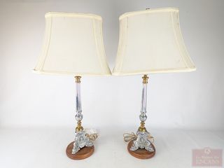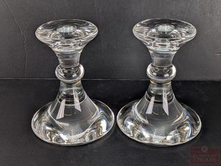 | #63 | Paire de bougeoirs en cristal Val Saint-Lambert mesurant 5.5 pouces de hauteur Paire de bougeoirs en cristal Val Saint-Lambert mesurant 5.5 pouces de hauteur | ||