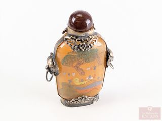 | #224 | Tabatière chinoise vintage en verre et laiton, peinte à la main de l'intérieur et mesurant 4 pouces de hauteur Tabatière chinoise vintage en verre et laiton, peinte à la main de l'intérieur et mesurant 4 pouces de hauteur | ||