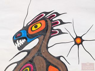 | #218 | Norman KNOTT- Peinture sur cuir haïda, signée et mesurant 24x18 pouces Norman KNOTT- Peinture sur cuir haïda, signée et mesurant 24x18 pouces | ||