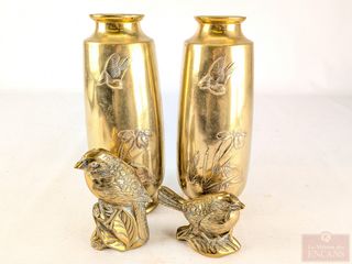 | #47 | Deux vases en laiton avec deux figurines coréennes en laiton, le plus grand vase mesurant 10 pouces de hauteur Deux vases en laiton avec deux figurines coréennes en laiton, le plus grand vase mesurant 10 pouces de hauteur | ||