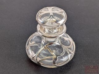 | #216 | Encrier art-nouveau en argent et en cristal, mesurant 2.5 pouces de hauteur Encrier art-nouveau en argent et en cristal, mesurant 2.5 pouces de hauteur | ||