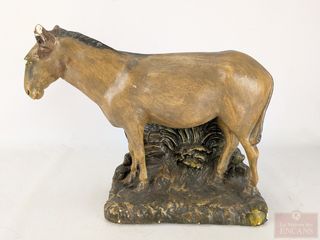 | #14 | Plâtre représentant un âne, peint à la main, signé B.O.S et mesurant 14 pouces Plâtre représentant un âne, peint à la main, signé B.O.S et mesurant 14 pouces | ||