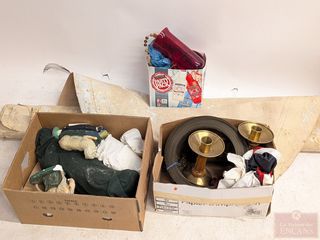| #159 | Lot religieux varié comprenant grande peinture mesurant 62 pouces de largeur, bougeoirs, chandeliers, bougies, appliques en laiton, figurines en plâtre et autres Lot religieux varié comprenant grande peinture mesurant 62 pouces de largeur, bougeoirs, chandeliers, bougies, appliques en laiton, figurines en plâtre et autres | ||
