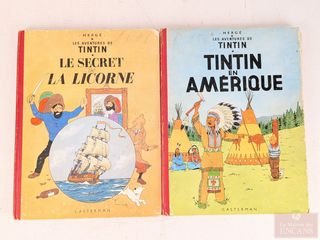 | #73 | Deux albums Tintin éditions de 1947, comprenant Tintin en Amérique et Le secret de la licorne Deux albums Tintin éditions de 1947, comprenant Tintin en Amérique et Le secret de la licorne | ||