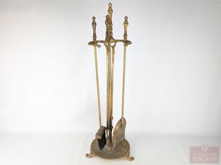 | #51 | Ensemble d'anciens outils de foyer en laiton, le support mesurant 31 pouces de hauteur Ensemble d'anciens outils de foyer en laiton, le support mesurant 31 pouces de hauteur | ||