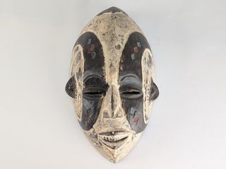 | #17 | Masque africain sculpté sur bois et peint à la main, mesurant 11.5 pouces de hauteur Masque africain sculpté sur bois et peint à la main, mesurant 11.5 pouces de hauteur | ||