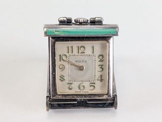| #120 | Cadran de voyage Rolex avec boitier en argent sterling et émail, datant des années 1930, mesurant 25 millimètres de largeur Cadran de voyage Rolex avec boitier en argent sterling et émail, datant des années 1930, mesurant 25 millimètres de largeur |