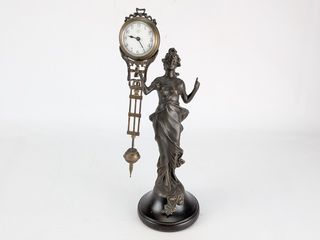 | #43 | Horloge à pendule allemande Junghans en métal, datant des années 1930 et mesurant 13 pouces de hauteur Horloge à pendule allemande Junghans en métal, datant des années 1930 et mesurant 13 pouces de hauteur | ||