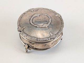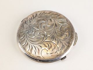 | #67 | Boite à fard en argent poinçonnée, mesurant 2.5 pouces de diamètre Boite à fard en argent poinçonnée, mesurant 2.5 pouces de diamètre | ||
