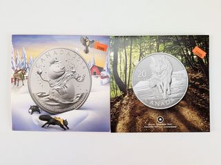 | #89 | Deux pièces canadiennes de vingt dollars 2013 et 2014 en argent pur 9999, encapsulées, sans taxes Deux pièces canadiennes de vingt dollars 2013 et 2014 en argent pur 9999, encapsulées, sans taxes | ||