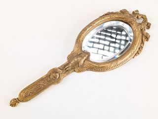 | #77 | Rare miroir de style Louis XVI en bronze doré, remis au président fondateur de la section du quatrième arrondissement de l'association des combattants de la grande guerre en 1933, mesurant 11.75 pouces de hauteur Rare miroir de style Louis XVI en bronze doré, remis au président fondateur de la section du quatrième arrondissement de l'association des combattants de la grande guerre en 1933, mesurant 11.75 pouces de hauteur | ||