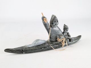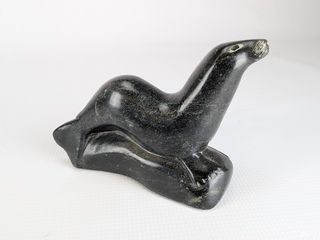 | #59 | Sculpture inuite sur pierre à savon, signée et mesurant 11 pouces de longueur Sculpture inuite sur pierre à savon, signée et mesurant 11 pouces de longueur | ||