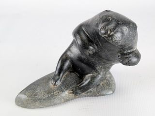 | #32 | Rare sujet inuit (époque esquimaude) représentant une loutre dansante avec de très fins détails et une ancienne patine, signée en syllabiques, mesurant 7x6x6.75 pouces, très lourde et en excellente condition Rare sujet inuit (époque esquimaude) représentant une loutre dansante avec de très fins détails et une ancienne patine, signée en syllabiques, mesurant 7x6x6.75 pouces, très lourde et en excellente condition | ||