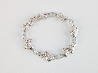 | #71 | Bracelet en argent à motifs de dauphins, serti d'aigue-marine et mesurant 7 pouces de longueur Bracelet en argent à motifs de dauphins, serti d'aigue-marine et mesurant 7 pouces de longueur | ||