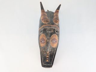 | #14 | Masque africain Zamble Gouro sculpté sur bois et peint à la main, provenant de la Côte-d'Ivoire, représentant une créature composite d'antilope et de crocodile et mesurant 15 pouces de hauteur Masque africain Zamble Gouro sculpté sur bois et peint à la main, provenant de la Côte-d'Ivoire, représentant une créature composite d'antilope et de crocodile et mesurant 15 pouces de hauteur | ||