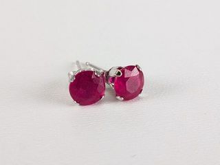 | #63 | Paire de boucles d'oreilles en or blanc 10k serties de rubis Paire de boucles d'oreilles en or blanc 10k serties de rubis | ||