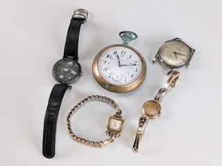| #114 | Lot de montres, dont Girodau avec boitier en acier inoxydable, mouvement automatique mesurant 39 millimètres avec sa couronne, Tissot Rock Watch, Omega pour dame, Birks Rideau, montre de poche J.C. Vézina, Québec ; à réviser Lot de montres, dont Girodau avec boitier en acier inoxydable, mouvement automatique mesurant 39 millimètres avec sa couronne, Tissot Rock Watch, Omega pour dame, Birks Rideau, montre de poche J.C. Vézina, Québec ; à réviser | ||