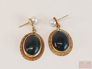 | #62 | Paire de boucles d'oreilles en or 10k serties d'agates et de perles, mesurant 1 pouce Paire de boucles d'oreilles en or 10k serties d'agates et de perles, mesurant 1 pouce | VENDU – CAD$ 90.00 | |