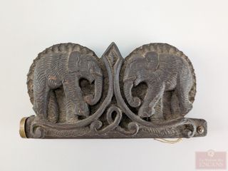| #210 | Balance portative orientale dans son coffret sculpté sur bois avec motifs d'éléphants, mesurant 6 pouces de largeur Balance portative orientale dans son coffret sculpté sur bois avec motifs d'éléphants, mesurant 6 pouces de largeur | ||