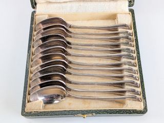 | #212 | Lot de cuillères Ercuis datant du début du 20eme siècle, dans leur coffret Lot de cuillères Ercuis datant du début du 20eme siècle, dans leur coffret | ||