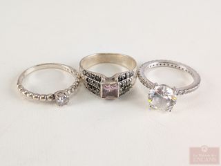 | #193 | Trois bagues en argent de tailles 5.5, 6.5 et 7 Trois bagues en argent de tailles 5.5, 6.5 et 7 | ||
