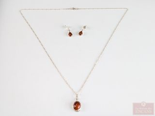 | #221 | Ensemble de bijoux en argent et ambre comprenant paire de boucles d'oreilles, pendentif et chaine mesurant 22 pouces de longueur Ensemble de bijoux en argent et ambre comprenant paire de boucles d'oreilles, pendentif et chaine mesurant 22 pouces de longueur | ||