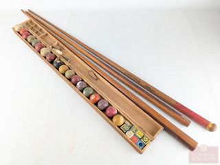 | #147 | Lot de queues et de boules de billards vintages Lot de queues et de boules de billards vintages | ||