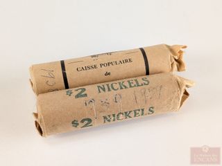 | #191 | Deux rouleaux de pièces canadiennes de sous 1938 et cinq sous 1939 Deux rouleaux de pièces canadiennes de sous 1938 et cinq sous 1939 | ||