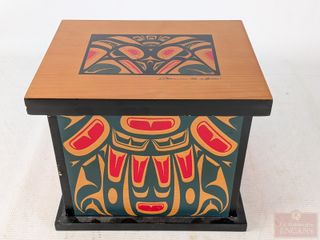 | #143 | Coffre en bois à motifs haïda, illustré par Clarence Q. Wells et mesurant 8 pouces de hauteur Coffre en bois à motifs haïda, illustré par Clarence Q. Wells et mesurant 8 pouces de hauteur | ||