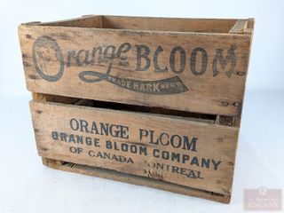 | #163 | Ancienne caisse en bois Orange Bloom, datant de 1924 et mesurant 15.5 pouces de largeur Ancienne caisse en bois Orange Bloom, datant de 1924 et mesurant 15.5 pouces de largeur | ||
