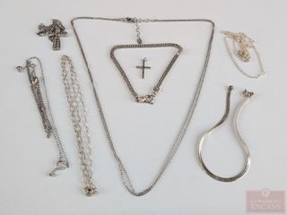 | #228 | Lot de chaines et bracelet en argent, la plus grande chaine mesurant 16 pouces de longueur Lot de chaines et bracelet en argent, la plus grande chaine mesurant 16 pouces de longueur | ||