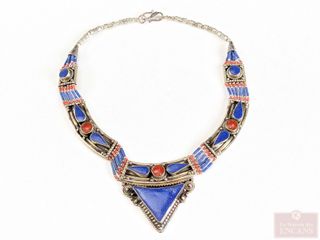 | #240 | Magnifique collier Tibétain vintage avec incrustations en corail rouge et turquoises, mesurant 14 pouces de longueur Magnifique collier Tibétain vintage avec incrustations en corail rouge et turquoises, mesurant 14 pouces de longueur |