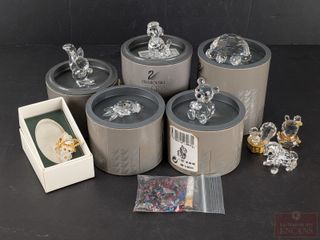 | #150 | Lot de figurines en cristal Swarovski, dont la tortue, le caniche, le crabe, l'écureuil et l'ourson, la plus grande mesurant 2.5 pouces de hauteur, dans leurs boites d'origines Lot de figurines en cristal Swarovski, dont la tortue, le caniche, le crabe, l'écureuil et l'ourson, la plus grande mesurant 2.5 pouces de hauteur, dans leurs boites d'origines | ||