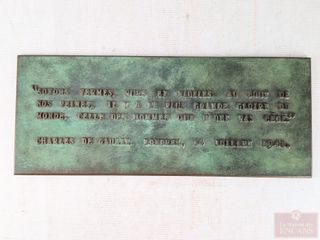 | #149 | Plaque de bronze avec citation de Charles de Gaulle, mesurant 7.75x19 pouces Plaque de bronze avec citation de Charles de Gaulle, mesurant 7.75x19 pouces | ||