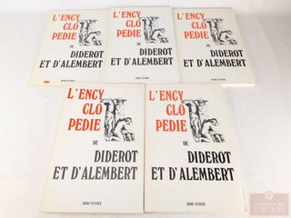 | #145 | Livre L'encyclopédie de Diderot et D'Alembert en cinq volumes, richement illustré, édité à Paris en 1965 et mesurant 15 pouces de hauteur, Livre L'encyclopédie de Diderot et D'Alembert en cinq volumes, richement illustré, édité à Paris en 1965 et mesurant 15 pouces de hauteur, | ||