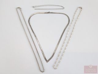 | #215 | Lot de chaines en argent, la plus grande mesurant 16 pouces de longueur Lot de chaines en argent, la plus grande mesurant 16 pouces de longueur | ||
