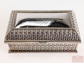 | #192 | Coffre à bijoux en métal avec intérieur en velours bleu, mesurant 7 pouces de largeur Coffre à bijoux en métal avec intérieur en velours bleu, mesurant 7 pouces de largeur | ||