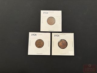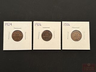 3 Pièces : (1 X Cent 1924) + (2 X 1 Cent 1926) dates clés