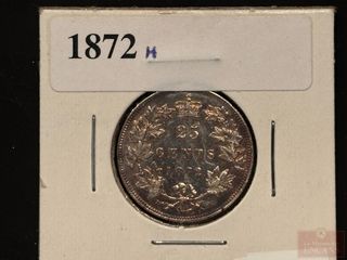 | #168 | Pièce de 25 Cents 1872H en Argent (en excellente condition avec de très beaux détails)