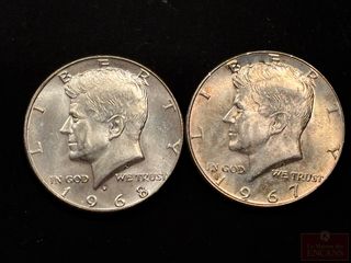 | #26 | 2 Pièces de 50 Cents US 1967 et 1968D en Argent (en très bonne condition)