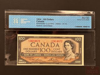 | #187 | Billet de $100 1954 certifié par CCCS AU-50 comme neuf