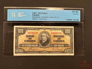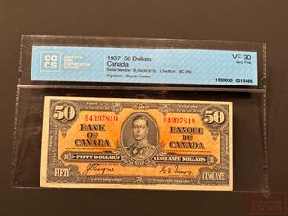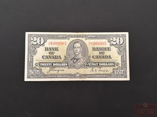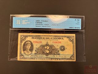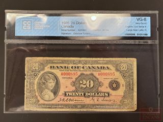 Billet de $20 1935 en Anglais Large Seal et low number avec effigie de la Reine à 8 ans certifié CCCS VG-8 (très rare)