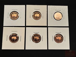| #189 | Lot de 6 Pièces de 1 Cent Épreuve 1996-1998-1999-2000-2001-2002
