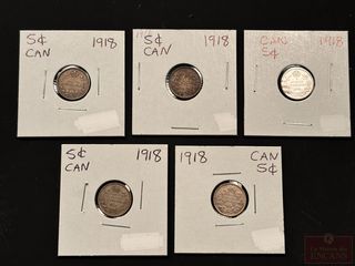 | #176 | 5 Pièces de 5 Cents 1918 en Argent .925