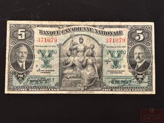 Billet de $5 1935 Banque Canadienne Nationale (en bonne condition)