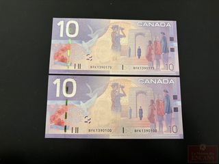 | #164 | 2 Billets de $10 2018 avec numéros consécutifs neufs