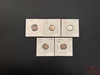 | #177 | 5 Pièces de 5 Cents 1919 en Argent .925