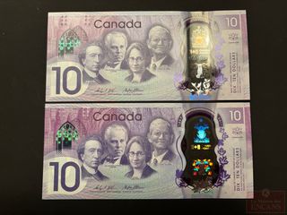 2 Billets de $10 1867-2017 avec numéros consécutifs neufs