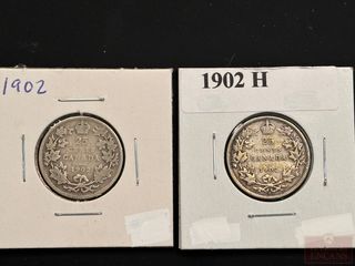 | #170 | 2 Pièces de 25 Cents 1902-1902H en Argent