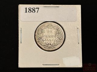 | #169 | Pièces de 25 Cents 1887 en Argent Victoria date clé rare GOOD